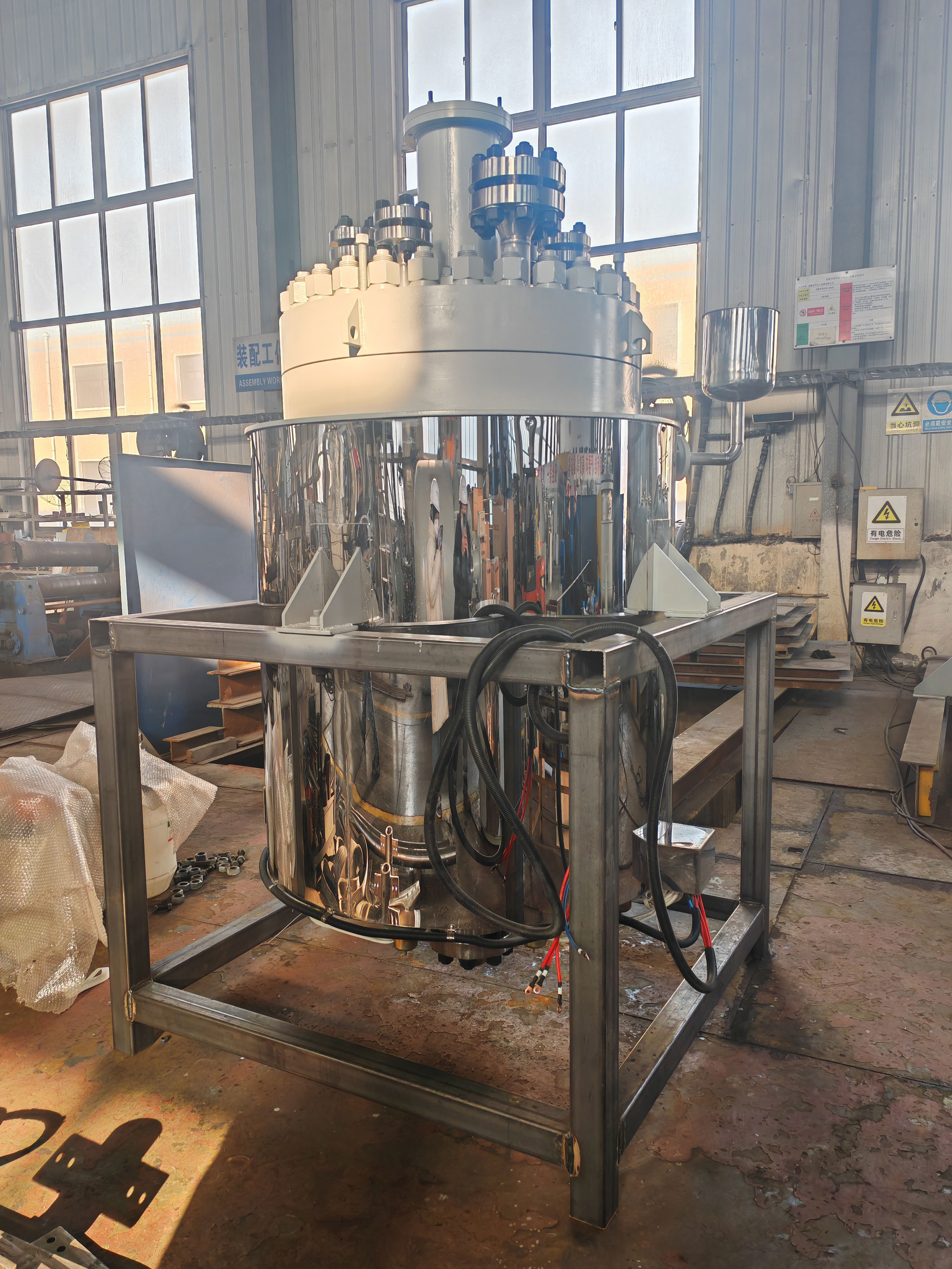 500L高壓不銹鋼復合板油浴電加熱反應釜已完工發往深圳客戶處