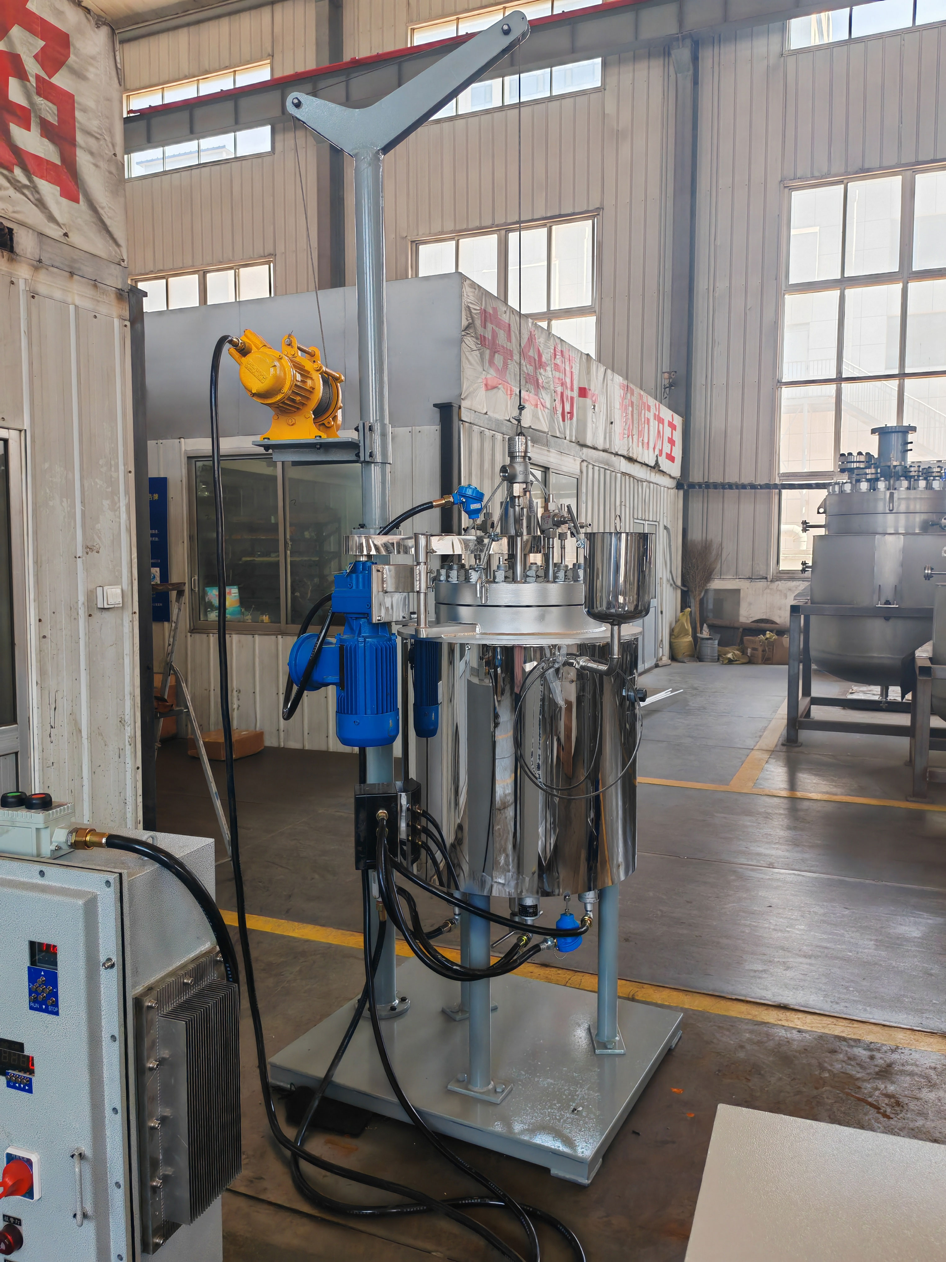 50L高壓高溫不銹鋼復合板電動升降反應釜已完工發往衢州客戶處