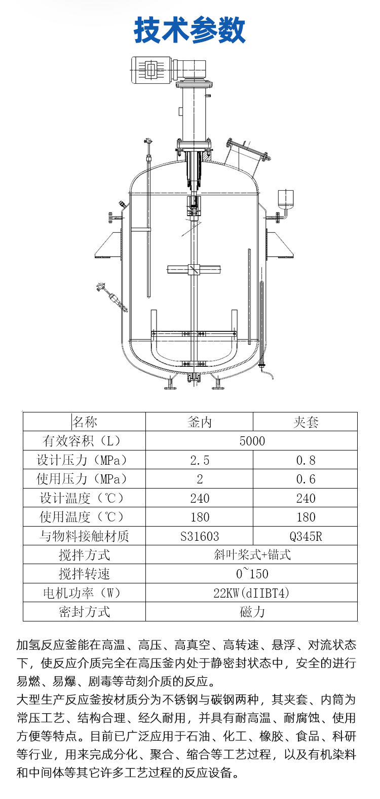 名稱:高溫高壓加氫反應釜