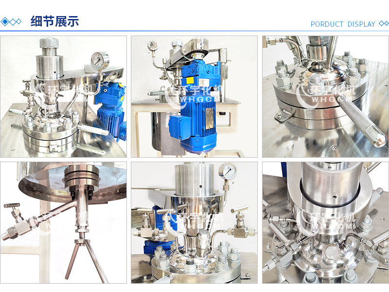 常規釜蓋開口 氣相口配針形閥,液相口配針形閥及釜內插底管,固體加料口配絲堵,測控溫口配鉑電阻,壓力表安全爆破口配壓力表及安全防爆裝置,釜內冷卻盤管進、出口配水咀