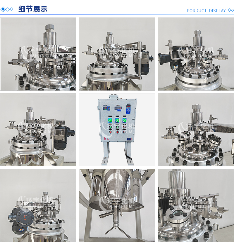 其他附件 如果用戶在釜蓋、釜體開口、內部結構、壓力高低、攪拌槳葉、及增加其他輔助裝置(如冷凝回流裝置、冷凝器、恒壓加料罐、接收裝置)等有特殊要求,可完全按用戶的要求加工制造